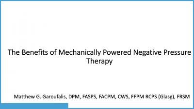 Matthew Garoufalis, DPM, FASPS, FACPM, CWS, FFPM, RCPS (Glasg), discusses application tips and techniques with dNPWT based on case scenarios. He also discusses the difference between disposable NPWT and electrically powered NPWT as well as the evidence for dNPWT.